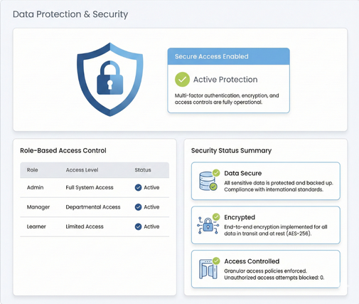 Corporate training involves confidential employee and organizational data. Without secure systems, data privacy becomes a concern.