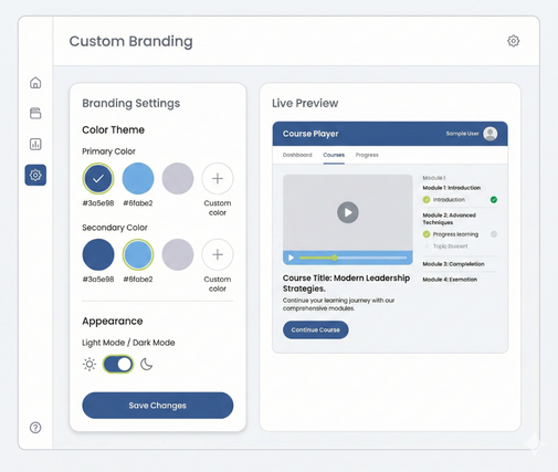 Launch a fully branded corporate LMS with your company logo, colors, certificates and communication templates.